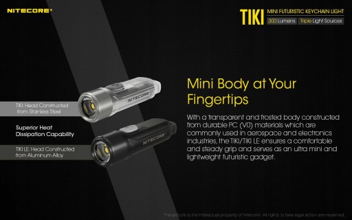 Nitecore TIKI LE to mała, niezwykle kompaktowa i wielofunkcyjna latarka o mocy 300 lumenów i zasięgu 71 metrów,