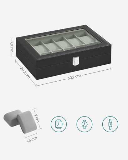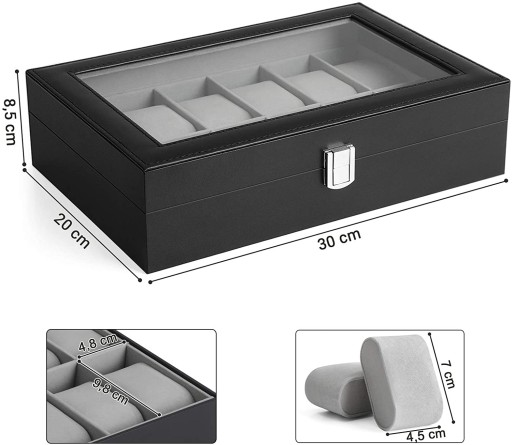 - Zawiera 12 miękkich zdejmowanych poduszek, łatwa do czyszczenia i konserwacji, chroni zegarki przed zarysowaniami i otarciem.