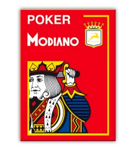 Seria wysokiej jakości kart do gry w pokera z klasycznym wzorem marki Modiano.