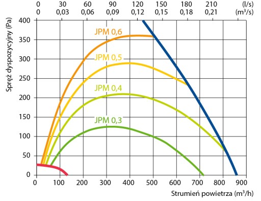 - JPM - 0,26 (W/m3/h), pobór mocy przez napęd wentylatora przy przepływie maksymalnym - 178 W.