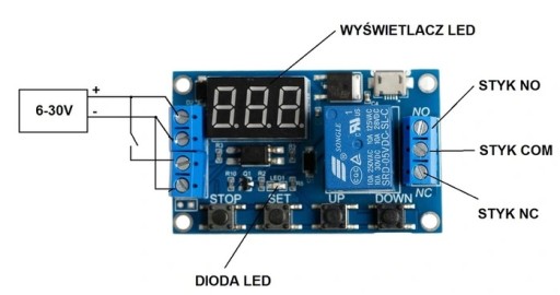 - Napięcie zasilania 6-30 VDC