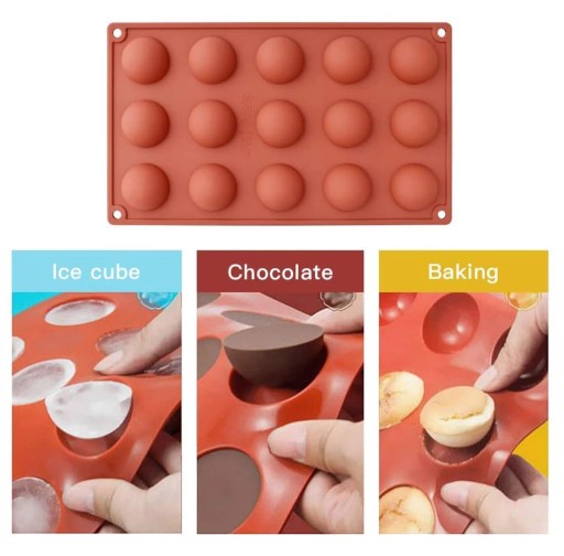 Foremki posiadają pola uformowane w kształcie półkul, które ułatwiają uzyskanie pożądanego kształtu półkoła. Z dwóch uzyskanych półkul można sbtwizyć ciastko w kształcie kuli 3D.