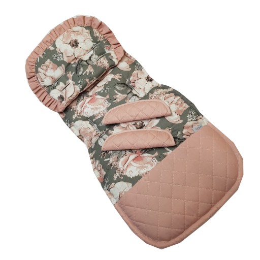 - Dwustronna wkładka do wózka spacerowego z pikowaniem na dole wkładki. Wkładka z jednej strony jest cała pikowana a z drugiej z bawełny .
