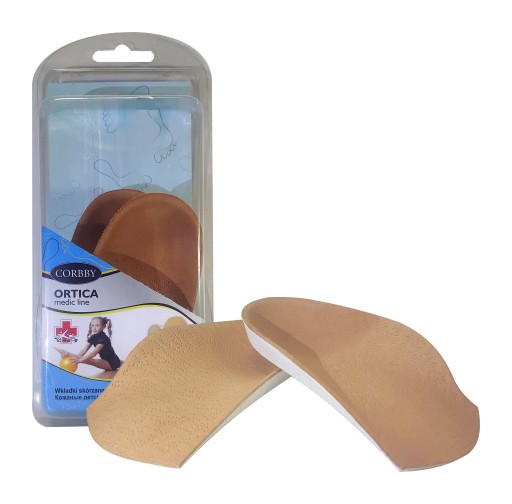 Nowoczesne wkładki zdrowotne dla dzieci Ortica są produktem medycznym, najwyższej jakości firmy Corbby. Dwuwarstwowe wkładki profilowane, wykonane z wysokogatunkowej skóry naturalnej oraz profilowanej pianki lateksowej. Dzięki anatomicznemu wyprofilowaniu podpierają i unoszą sklepienie podłużne stopy oraz stabilizują właściwe ustawienie dziecięcej pięty w obuwiu. Amortyzują mikrowstrząsy powstałe podczas chodzenia, przynoszą ulgę zmęczonym stopom. Polecane do każdego rodzaju obuwia.