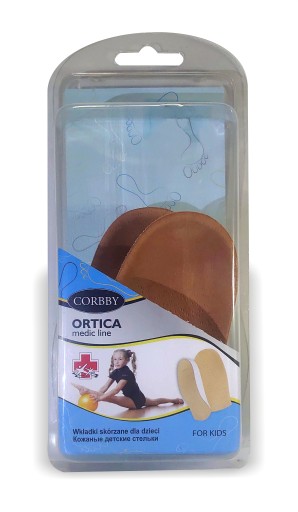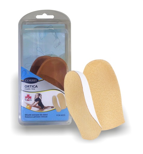 Nowoczesne wkładki zdrowotne dla dzieci Ortica są produktem medycznym, najwyższej jakości firmy Corbby. Dwuwarstwowe wkładki profilowane, wykonane z wysokogatunkowej skóry naturalnej oraz profilowanej pianki lateksowej. Dzięki anatomicznemu wyprofilowaniu podpierają i unoszą sklepienie podłużne stopy oraz stabilizują właściwe ustawienie dziecięcej pięty w obuwiu. Amortyzują mikrowstrząsy powstałe podczas chodzenia, przynoszą ulgę zmęczonym stopom. Polecane do każdego rodzaju obuwia.