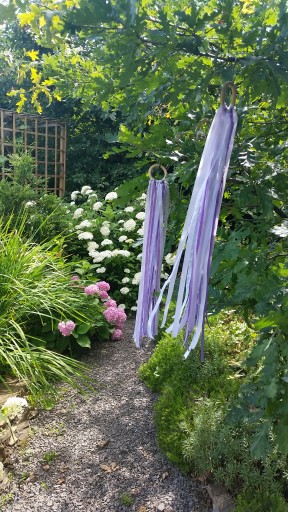Do kółka przywiązane są po dwie wstążki z każdego rodzaju, łącznie 14 wstążek każda o długości 55 cm, zabezpieczone na końcach.