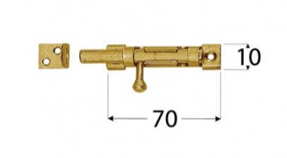 Wąska zasuwka z ryglem okrągłym WOS 70 o wymiarach 70X10 mm - wykonana z blachy ocynkowanej galwanicznie w kolorze żółtym. Stosowana jako element zamykający w drzwiach, furtkach, skrzyniach lub w okiennicach. Montowana jest za pomocą śrub, wkrętów jaki również gwoździ. Charakteryzuje się solidnym i estetycznym wykonaniem. Może być stosowana w konstrukcjach drewnianych lub stalowych.