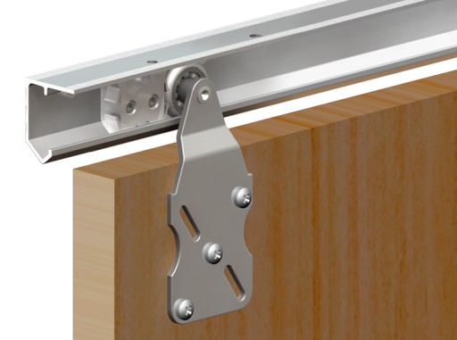 Montaż wózków na płaszczyźnie drzwi jest szczególnie polecany w przypadku drzwi z płyty wiórowej. Zapewnia większą trwałość i wytrzymałość mocowania niż w przypadku montażu wózków do górnej krawędzi drzwi.
