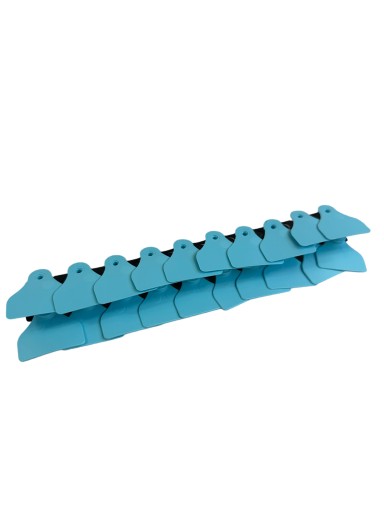 Trójkątne kolczyki dla loch są wyposażone w metalowy trzpień, który łatwo i szybko przebija ucho. Wymiary kolczyka (4 cm szerokość, 4 cm wysokość) sprawiają, że numeracja jest dobrze widoczna.