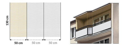 Kupując jedną sztukę - otrzymujesz siatkę 130 cm x 50 cm. Każda kolejna sztuka to dodatkowe 50 cm siatki. Przykładowo: