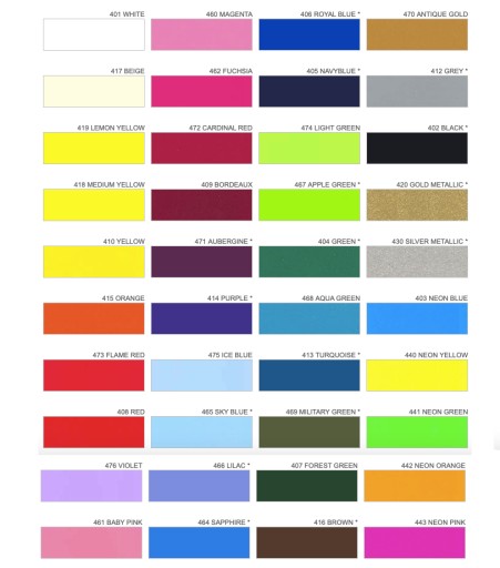 - kolor nici - dowolny wielokolorowy, kolor folii - w cenie wykonanie tylko w jednym kolorze (powyżej tabela kolorów)