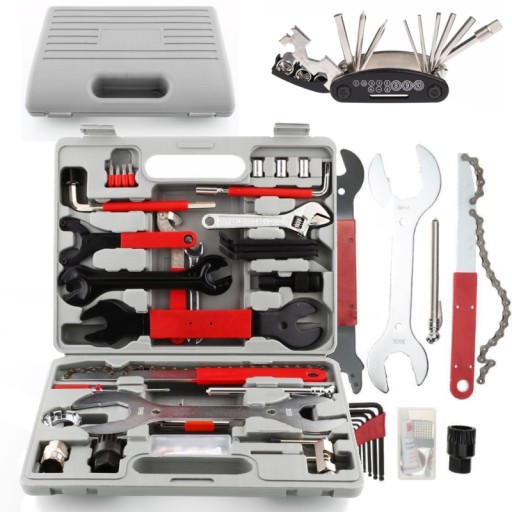 WYSOKA JAKOŚĆ - Wysokiej jakości zestaw narzędzi do kompletnego serwisu roweru 44 elementy sztuki w wygodnej walizce.