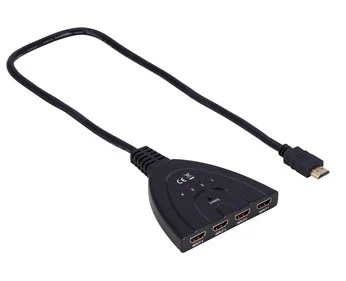 Switch HDMI umożliwia podłączenie 4 urządzeń np dekodera/VHS/DVD do telewizora, który ma tylko jedno wejście HDMI. Za pomocą przycisku na urządzeniu przełączamy między trzema urządzeniami, które ma być aktualnie wyświetlane.