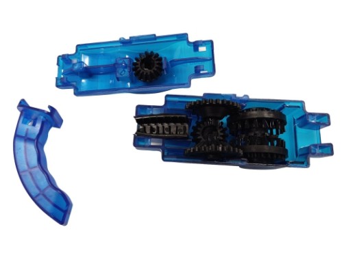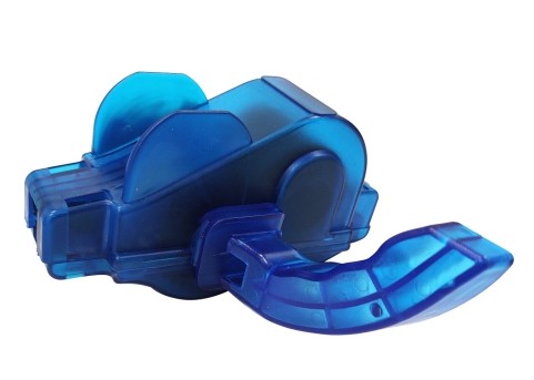 Przyrząd do czyszczenia łańcucha oparty na konstrukcji składającej się z 6 obrotowych szczotek, które docierają do każdego ogniwa.