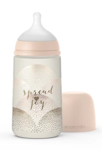 Wysokiej jakości butelka z kolekcji Spread Joy o pojemności 270 ml dostępna z innowacyjnym fizjologicznym smoczkiem SX Pro o wolnym przepływie, który został zaprojektowany z myślą o specyfice jamy ustnej noworodka, którego dolna i górna szczęka dopiero się rozwija. Rewolucyjny kształt smoczka SX Pro pozwala językowi pozostać w pozycji, którą dziecko naturalnie i fizjologicznie utrzymuje podczas karmienia piersią.