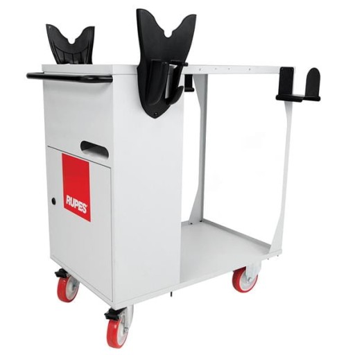 Wielozadaniowy wózek przeznaczony do profesjonalnych odkurzaczy RUPES z serii S2. Kompaktowe i zwrotne stanowisko robocze zapewnia praktyczne i wszechstronne rozwiązanie dla profesjonalnego użytkownika, zapewniając większą mobilność w miejscu pracy, oraz doskonały dostęp do narzędzi i materiałów eksploatacyjnych. Wózek został wyposażony w ergonomiczny uchwyt, duże gumowe kółka z blokadą, uchwyty na narzędzia, wsporniki do węży, szafkę, stół roboczy z pojemnikiem i komorą na odpady.
