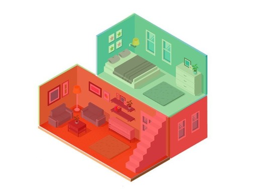 Opis działania: kolorem zielonym oznaczona jest strefa wewnętrzna, swobodnego poruszania się, czyli strefa nieaktywna - na przedstawionej grafice jest to sypialnia, natomiast kolorem czerwonym strefa zewnętrzna, która jest aktywna - po naruszeniu tej strefy włączy się alarm.