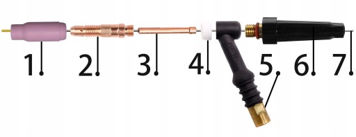 Zestaw podstawowych elementów niezbędnych do uzbrojenie każdego uchwytu spawalniczego TIG o standardzie SR17/18/26
