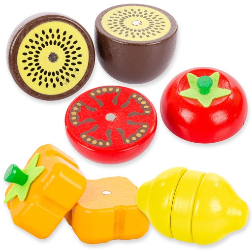 Owoce, warzywa i rybę można "przekroić" załączonymi do zestawu nożykami, potem bardzo łatwo je połączyć poprzez magnes znajdujący się wewnątrz. Dzięki możliwości przekroju dziecko zobaczy, jak produkt wygląda od wewnątrz.