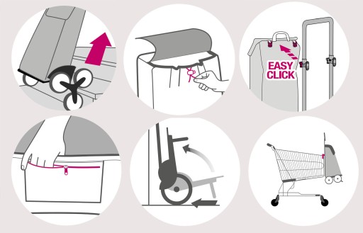 Bardzo lekka i pojemna torba na zakupy na 6 kołach. Worek jest zamykany sznurkiem i przykrywany niewielką klapką. Wózek posiada specjalny system „Easy-Click” do łatwego wyjmowania worka. Wewnątrz torby znajduje się dodatkowa kieszeń na suwak. Torba spoczywa na plastikowej składanej podstawce (wózek składa się na płasko). Specjalny system 6 kół powoduje że łatwiej jest wciągnąć zakupy po schodach. Wózek można powiesić na wózku sklepowym ponieważ ma specjalny zaczep.