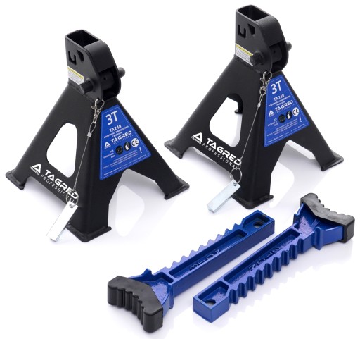 4x Kobyłki podstawki warsztatowe pod samochód WZMOCNIONE z blokadami zabezpieczającymi - PIN-ami, gumowe nakładki.