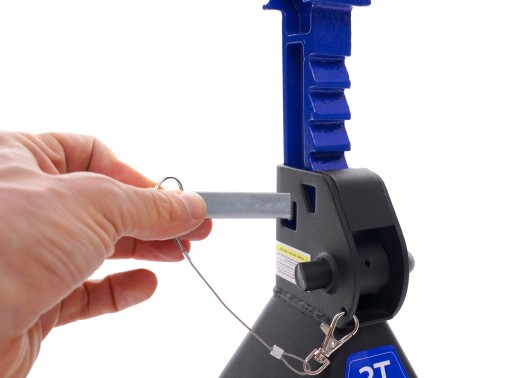 Specjalna, dodatkowa blokada w postaci bolca (pinu) zabezpiecza mechanizm zapadkowy przed niezamierzonym opuszczeniem kolumny podpory. Pin zaopatrzony jest w stalową linkę przymocowaną do korpusu kobyłki, co chroni go przed zgubieniem.
