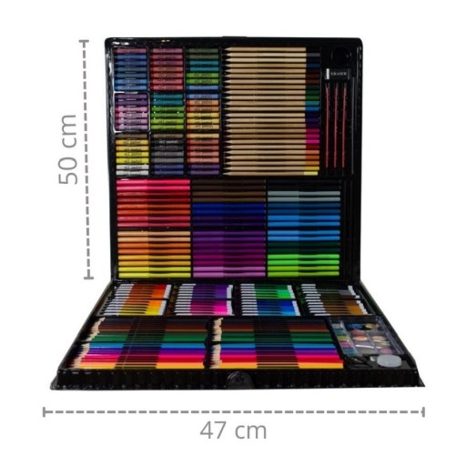 Zestawy artystyczne to szeroki wybór akcesoriów do malowania i rysowania zamknięty w estetycznej walizce do przenoszenia. Komplet składa się z 258 elementów - mnogość przyborów sprawi, że każde użycie zestawu artystycznego będzie doskonałą podróżą w świat sztuki. Wykonane z najwyższej jakości materiałów przybory mają szeroką gamę kolorystyczną, co dodatkowo ułatwi wykonywanie prac plastycznych. Wysokiej jakości akcesoria zawarte w zestawie dobrze kryją papier oraz są bardzo wydajne, dzięki czemu będziesz mógł tworzyć swoje prace przez długi czas.