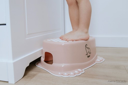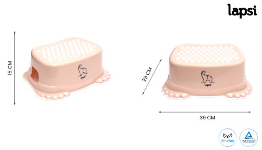 Podnóżek z serii Słonik marki Lapsi to doskonały produkt ułatwiający naukę samodzielnego korzystania z toalety i mycia rąk. Sprawdzi się również w innych sytuacjach, na przykład w kuchni lub pokoiku malucha.