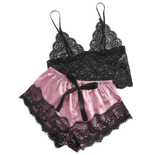 - Składa się z koronkowej koszulki i satynowych spodenek