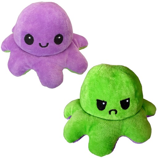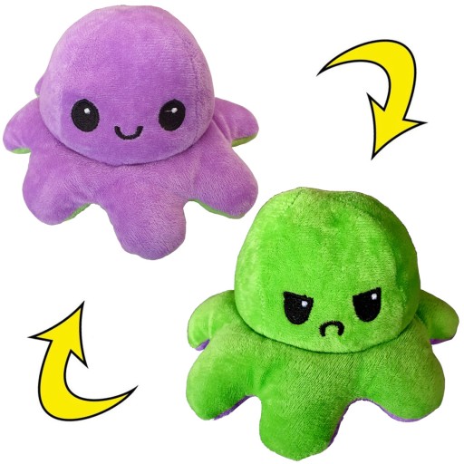 Oferowana na naszej aukcji maskotka ma kształt ośmiornicy, a cały jej fenomen polega na tym, że jest dwustronna ! Jak to działa?