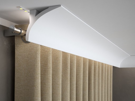 Listwy karniszowe Mardom Decor to doskonałe rozwiązanie dla osób chcących zamaskować karnisz, który często nie stanowi atrakcyjnej dekoracji wnętrza. Specjalnie wyprofilowany kształt pozwala na umiejscowienie z tyłu listwy oświetlenia LED, dodatkowo eksponującego aranżację przestrzeni okiennej. Listwy stanowią wygodną alternatywę dla zabudowy kartonowo-gipsowej, która wymaga znacznie większych nakładów finansowych i czasowych.