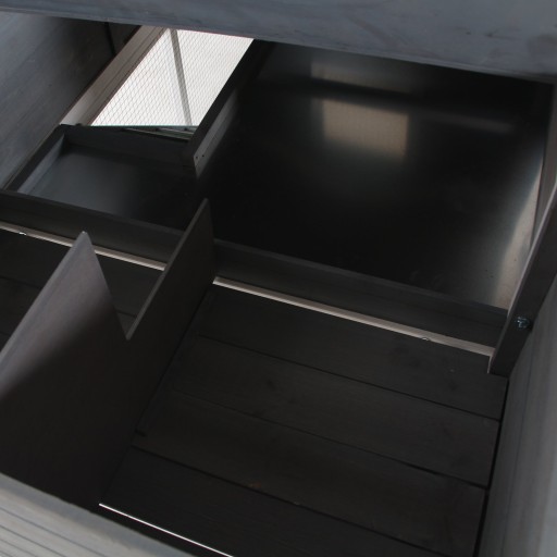 ✓ - Zakres dostawy obejmuje budkę lęgową dla kur – jej dach można łatwo otworzyć, żeby wyjąć jajka