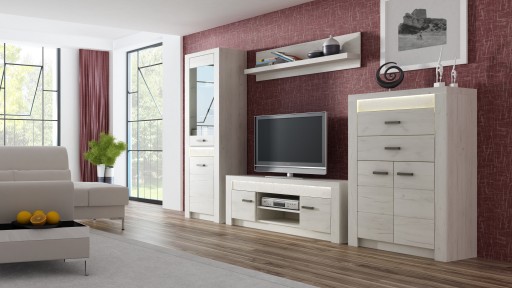 Zaletą systemu INDIANAPOLIS jest fakt posiadania sporej liczby elementów, wchodzącej w jego skład. Sprawia on, że możemy świetnie zaprojektować wnętrze naszego salonu, sypialni a także biura lub gabinetu. Specjalnie dobrana tekstura i kolorystyka oraz połączenie surowości drewna i grubości blatów, podkreśla optycznie solidność budowy mebla. Wysoka dbałość o najmniejsze szczegóły i niepowtarzalne, oryginalne wykończenie, z pewnością zadowoli najbardziej wymagających Klientów.