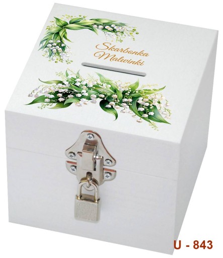 Drewniane pudełko z zewnątrz malowane na biało wieko z kolorowym nadrukiem bezpośrednio na pudełku , personalizacja IMIĘ
