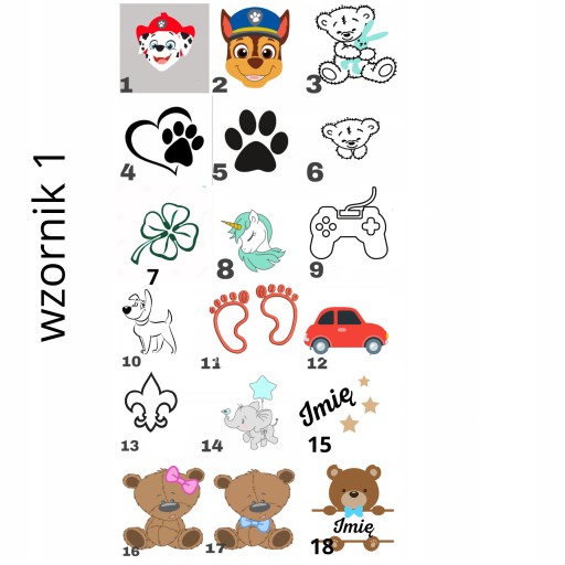 2.Wybierz grafikę, imię i grafikę lub samo imię (wielkość haftu mieści się w polu 20x20 cm).