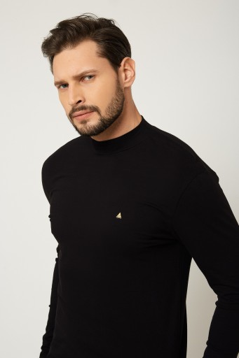 Półgolf wykonany z bawełny premium z domieszką elastanu gwarantuje niesamowity komfort noszenia oraz brak efektu zużycia nawet po wielu praniach. Dzięki specjalnemu wykończeniu pod szyją idealnie nadaje się pod marynarkę, a także do codziennej i sportowej stylizacji. Logo w kolorze złotym na piersi. Dzięki specjalnemu krojowi oraz dodatku elastanu doskonale dopasowuje się do ciała podkreślając męską sylwetkę.