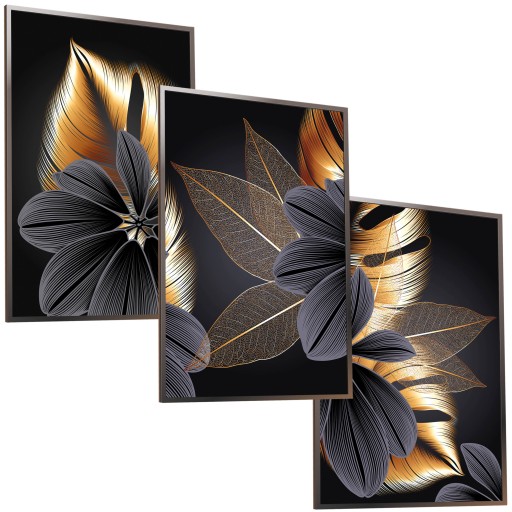 НАБОР РАМА A3x3 ИЗОБРАЖЕНИЕ ЗОЛОТЫЕ ЦВЕТЫ ЗОЛОТЫЕ ЛИСТЬЯ