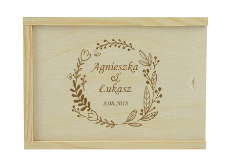 Prezentujemy pudełko na zdjęcia o wymiarach 21 x 15 mm z możliwością personalizacji. Nasz produkt do doskonały wybór dla fotografów ślubnych chcących wzbogacić swoją ofertę o designerskie pudełko na odbitki. Dodatkowo każde z pudełeczek wypełnione jest wełną drzewną, co dodatkowo uatrakcyjnia wygląd oraz podkreśla rustykalny charakter produktu.