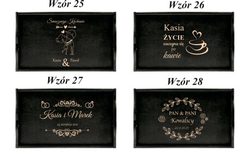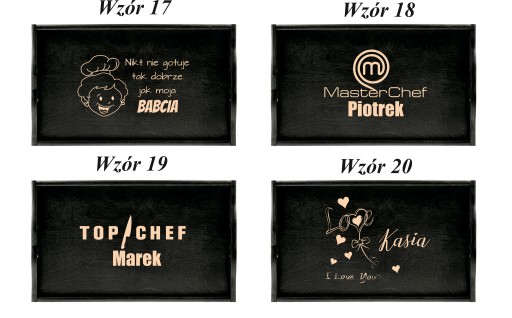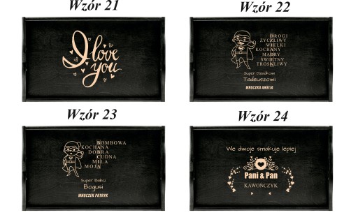 Na tej aukcji prezentujemy grawerowany drewniany stolik . Z pewnością sprawdzi się przy serwowaniu dań i przypadnie do gustu przyszłemu właścicielowi. Szczególnie, że mogą Państwo umieścić na niej własny tekst taki jak imiona czy datę. Świetny pomysł na prezent dla pasjonatów kuchni i dla zakochanych. Dla ułatwienia mogą Państwo wybrać jeden z poniższych wzorów lub przesłać swój pomysł. Drewniana deska z oryginalnym tekstem rozbawi każdą osobę i sprawdzi się jako prezent na każdą okazję.