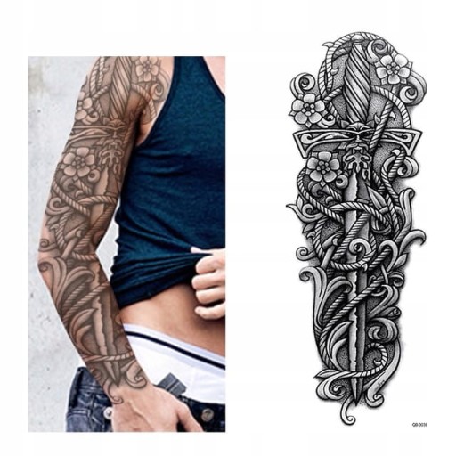Временная татуировка рукав рука 45см сабля кинжал