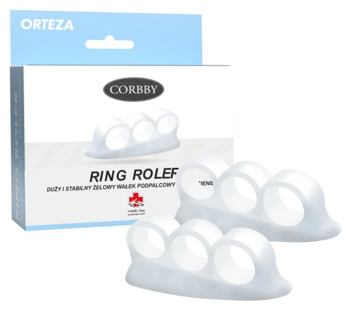 Nowoczesne wałki prostujące palce stóp Ring Roler są produktem najwyższej jakości polskiej firmy Corbby. Żelowe, stabilne podpory pod palce, wyposażone w trzy pierścienie. Podpory w kształcie wałka doskonale zapobiegają ich podginaniu się, korygując palce młotkowate, szponiaste oraz inne deformacje palców. Redukują i łagodzą naciski przodostopia przy płaskostopiu poprzecznym, zmniejszając ból i naprężenie zniekształconych palców. Zapobiegają zrogowaceniu oraz stwardnieniu naskórka palców, poprawiają ich ułożenie oraz chronią opuszki przed ocieraniem. Pierścienie na palce zapewniają rozciąganie ściśniętych palców stóp oraz utrzymują wałek na właściwym miejscu. Polecane do codziennego użytku przy zaleceniach ortopedycznych i medycznych. Przeznaczone do każdego rodzaju obuwia.