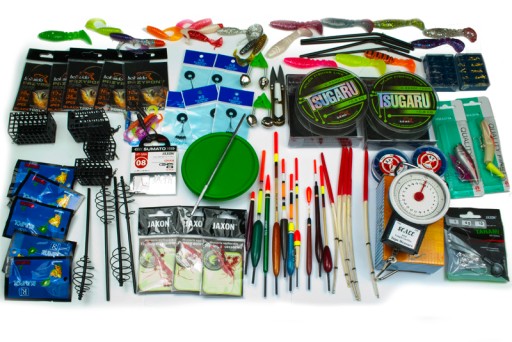 W zestawie masa różnego rodzaju akcesoriów gruntowych, spinningowych oraz spławikowych, najpopularniejszych Polskich firm jak Jaxon czy Shark Hokkaido.