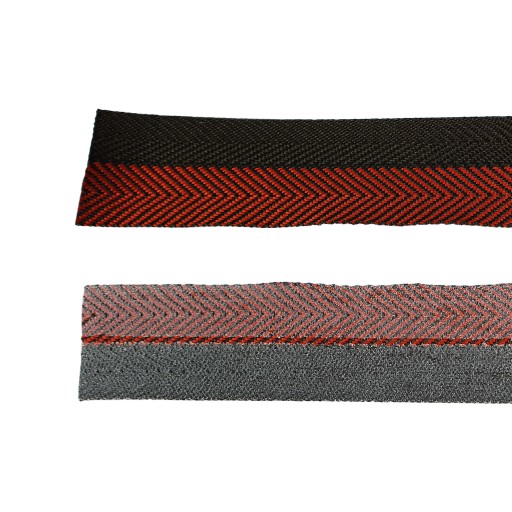 Taśma dywanowa jest dwukolorowa (dopasowana do siebie kolorystyka), o wzorze jodełki, który pozwala na wizualne zamaskowanie nierównych krawędzi, przez co podłoże, na którym używana będzie taśma nie musi być idealnie równe.