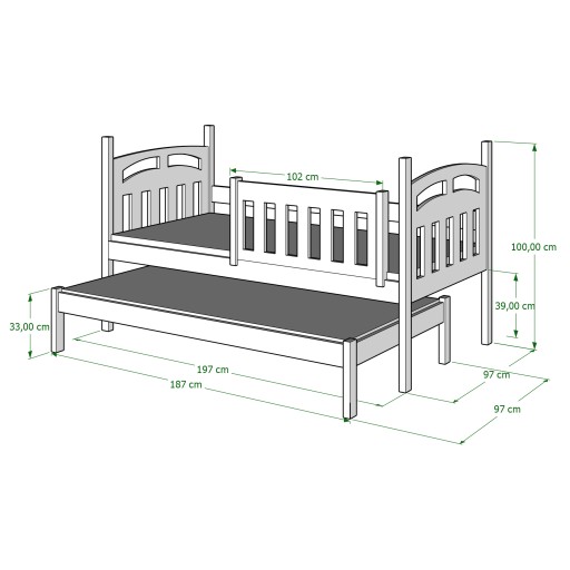 Drewniane łóżko dziecięce – Zuzia DUO 190x90/180x90