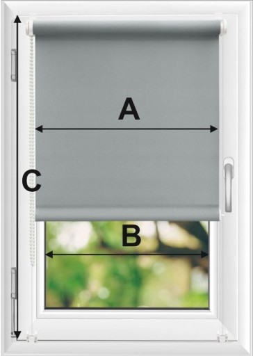 - Mierzymy szerokość szyby (B). Do uzyskanej szerokości dodajemy od 2 do 6 cm (A). Należy pamiętać, że roleta powinna być nieco szersza od szyby, ale nie może zasłaniać klamki. Zalecany minimalny odstęp tkaniny od klamki minimum to 0,5 cm.