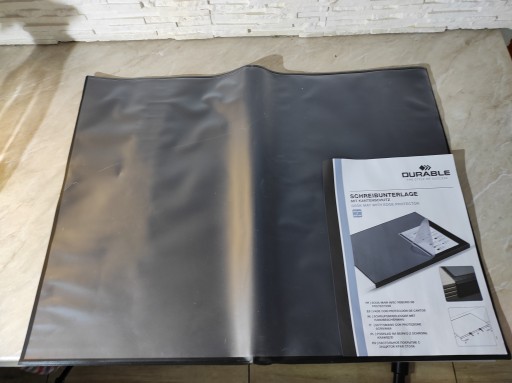 Podkład na biurko z zabezpieczeniem krawędzi i transparentną nakładką, idealną do włożenia pod nią notatek i spisów (np. nr telefonów). Z paskiem samoprzylepnym, który można przykleić do krawędzi biurka. Antypoślizgowy.