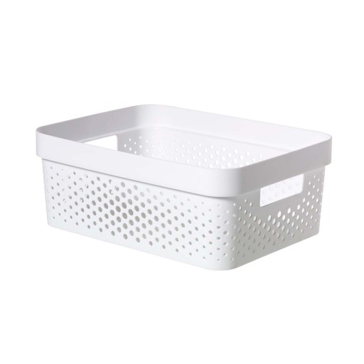 Seria pojemników Infinity to pewność porządku i to w dobrym stylu. Przechowamy w nim zapasy żywności, ubrania, książki, dokumenty. Słowem: absolutnie wszystko! Prezentowany pojemnik posiada ażurową strukturę, dzięki której możliwa jest ciągła cyrkulacja powietrza. Projektanci nadali pojemnikowi prosty, ale niebanalny kształt. Można je ustawiać jeden na drugim w dowolnej kombinacji. Idealnie komponuje się ze skandynawskim aranżem wnętrz.