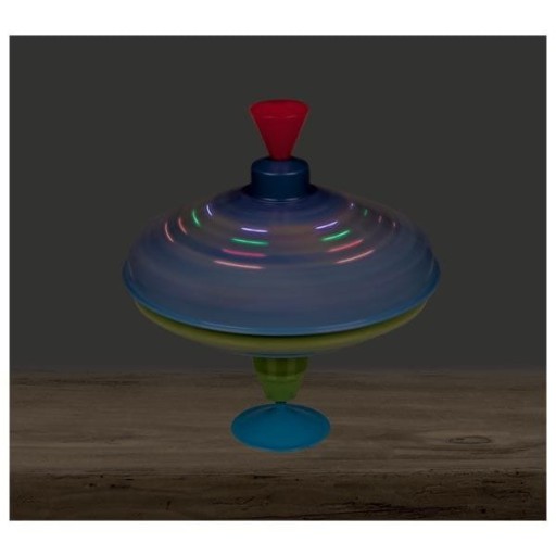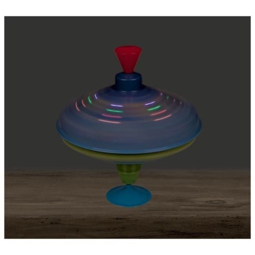 Duży metalowy bąk to tradycyjna zabawka, którą uwielbiają chyba wszystkie dzieci! Bączek ma kolorowy, kosmiczny wzór, który wprawiony w ruch tworzy wizualnie obracającą tęczę. Dodatkowo baczek ma zamontowaną żarówkę LED. Pod wpływem siły odśrodkowej gdy dziecko zakręci baczkiem ukaże się śliczne kolory, tworzące całe świecące pasy. Efekt będzie imponujący i zachwyci każdego malucha.