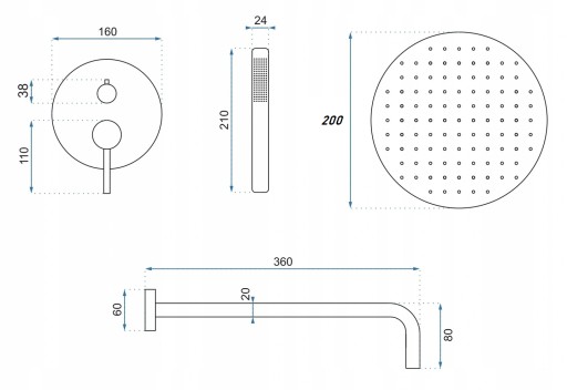 Dopełnieniem całości jest słuchawka prysznicowa. Jest ona dopasowana designem do całości zestawu. W zestawie znajduje się także wąż prysznicowy o długości 1,5m.