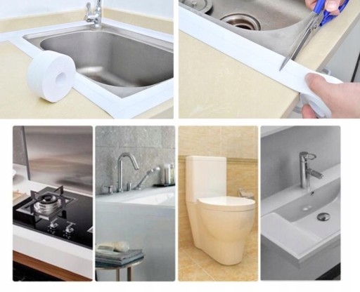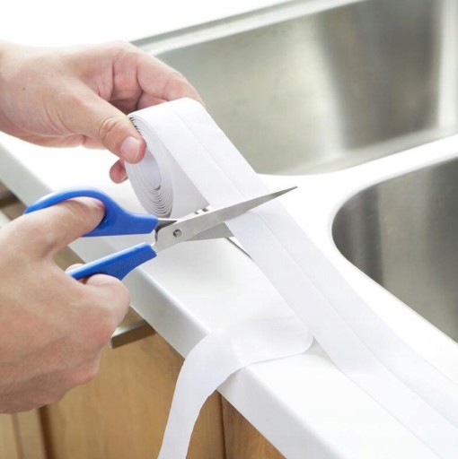 Silikonowa taśma wykończeniowa, uszczelniająca, wąska do uszczelniania brodzików, wanien, umywalek, podłóg itp.